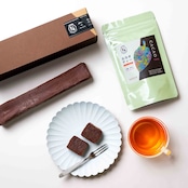 オリジナルブレンドのチョコレートをたっぷり使った生ガトーショコラと、カカオの「皮(ハスク)」で作ったカカオティー10杯分がセットになったセットです。色々なスタイルでカカオの魅力をお楽しみください。