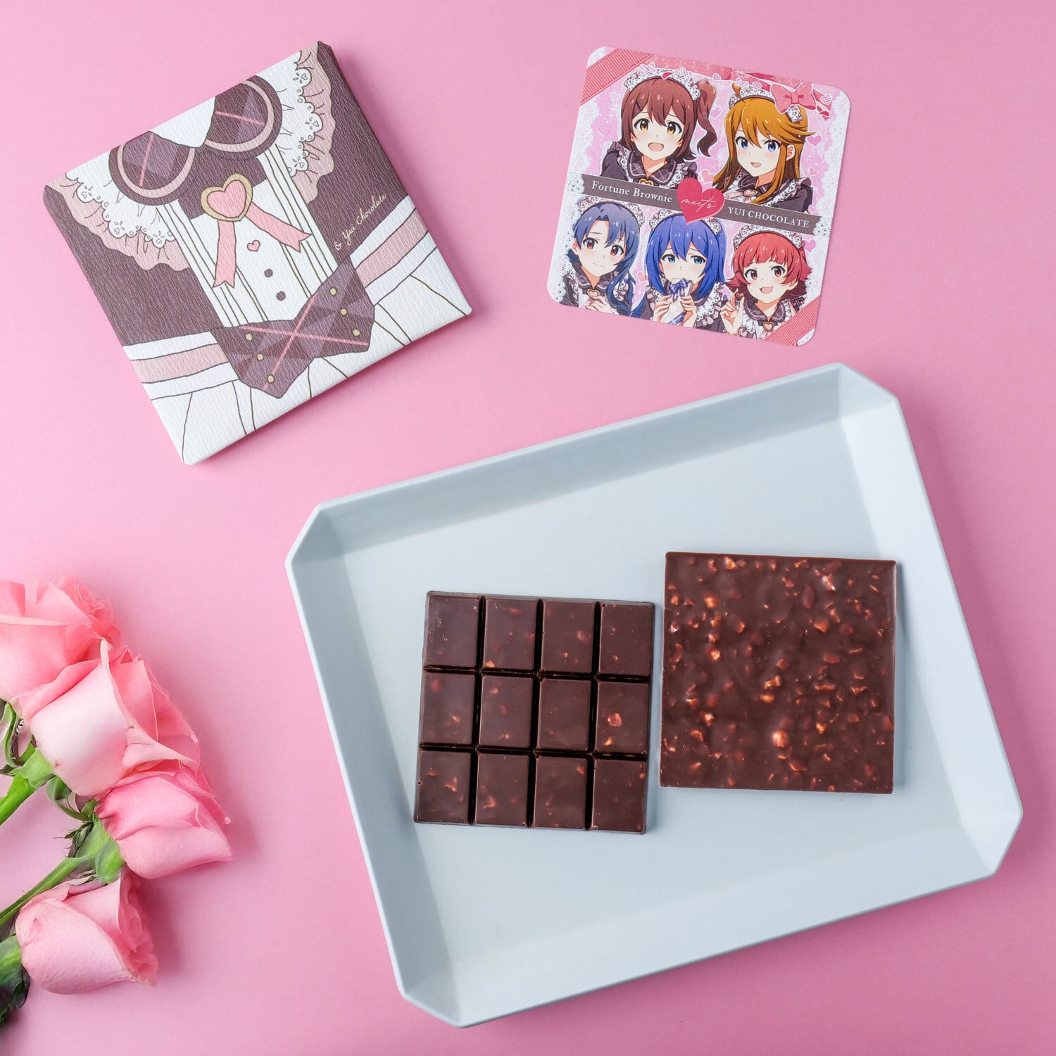 バンダイナムコエンターテインメントが展開する、メディアミックスコンテンツ「アイドルマスター」。この中で誕生した人気ユニット『ショコラブル*イブ』とのスペシャルコラボ商品として販売しました。ガーナをベースとした特製クランキーアーモンドチョコレートを開発し、オリジナルデザインカードと同梱。衣装「フォーチュン・ブラウニー」をイメージしたパッケージで包みました。